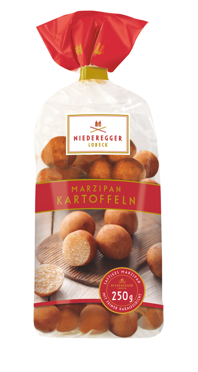 Die Niederegger Marzipan Kartoffeln (250 g) sind eine der beliebtesten Spezialitäten aus dem Hause Niederegger – ein Klassiker, der für die reine, unverfälschte Kunst des Lübecker Marzipans steht. Mit ihrem typischen, leicht mit Kakao bestäubten Äußeren erinnern sie an kleine Kartoffeln, doch ihr Inneres offenbart das, wofür Niederegger seit über zwei Jahrhunderten berühmt ist: feinster Geschmack, höchste Qualität und unverwechselbare Handwerkskunst.