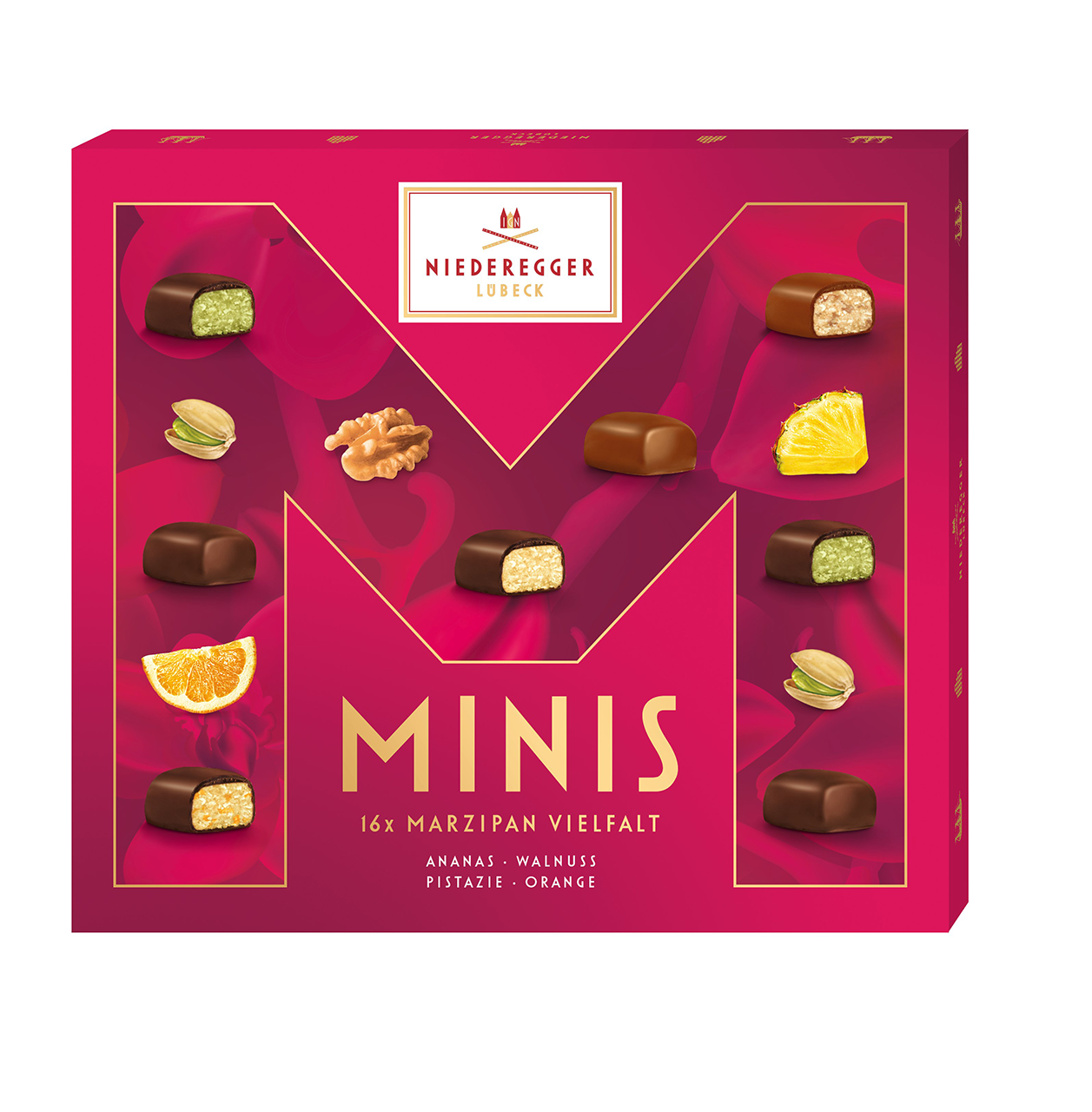Die Niederegger Minis Marzipan Vielfalt (112 g) ist eine feine Auswahl kleiner Marzipanköstlichkeiten aus dem Hause Niederegger – perfekt portioniert für Genussmomente zwischendurch oder als stilvolles Geschenk.