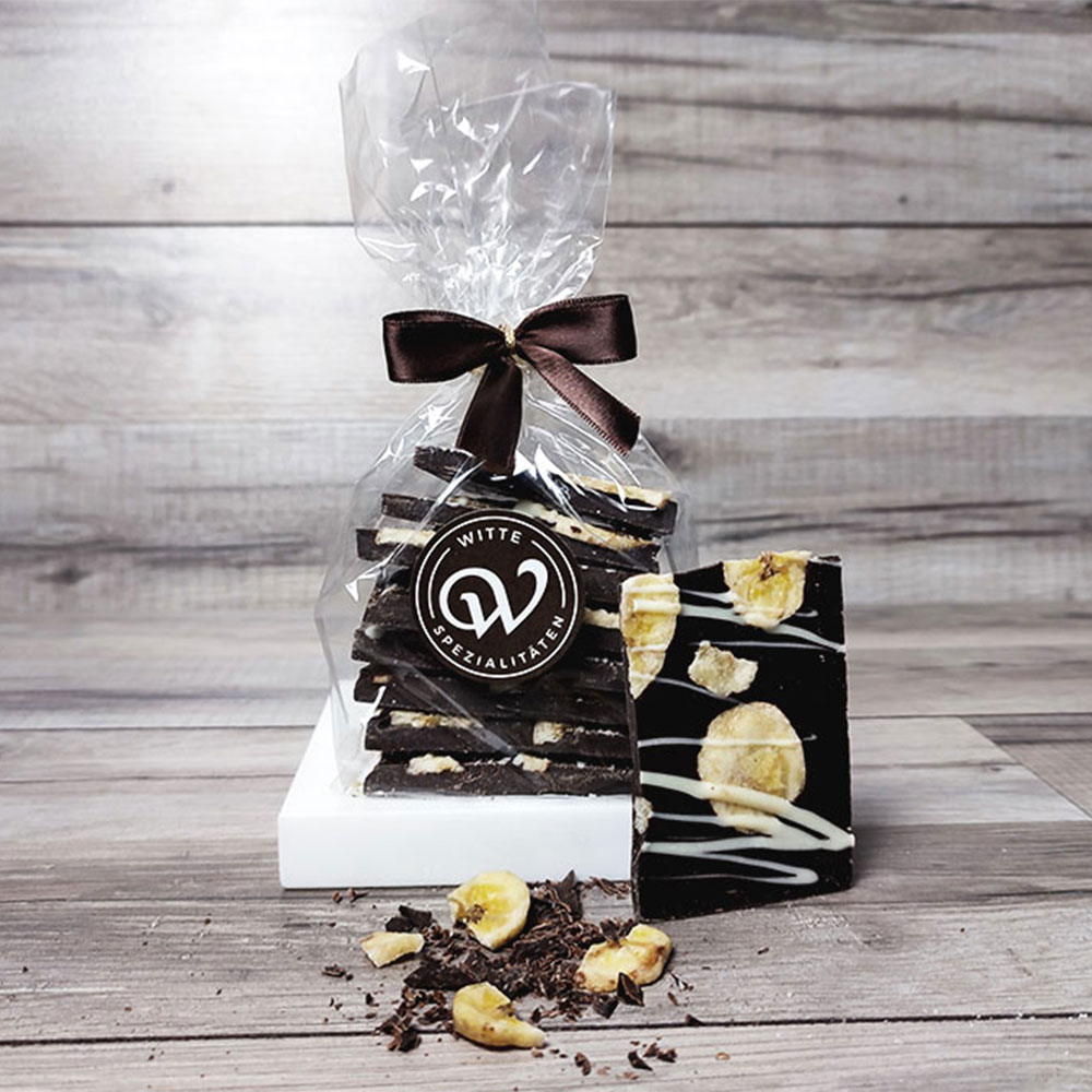Bei Lifestyle Liebl präsentieren wir Ihnen diese hochwertig veredelte Schokoladenspezialität von Witte Spezialitäten – entdecken Sie persönlich, wie dunkle Schokolade, fruchtige Bananenchips und elegante Verarbeitung harmonisch verschmelzen. Unser Team berät Sie gern individuell und hilft Ihnen, genau jene Köstlichkeit zu finden, die Ihrem Geschmack entspricht – stilvoll, zuverlässig und ganz nach Ihrem Wunsch.