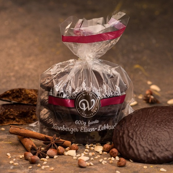 Dieses Premium-Produkt präsentiert sich in einem 600 g-Beutel mit vier Stück der bekannten „Elisen“-Rezeptur – jedes Stück wiegt ca. 150 g und misst rund 130 mm im Durchmesser. Diese außergewöhnliche Größe macht sie zum Höhepunkt der Kollektion: Man genießt hier bewusst und stilvoll. Der Lebkuchenteig enthält einen Haselnusskernanteil von 32 % – das sorgt für Tiefe, Aroma und eine saftige Textur. Die Oberfläche ist mit einer hochwertigen Kuvertüre überzogen, die den nussig-würzigen Kern elegant umhüllt und dem Gesamtwerk eine edle Schokoladennote verleiht.
