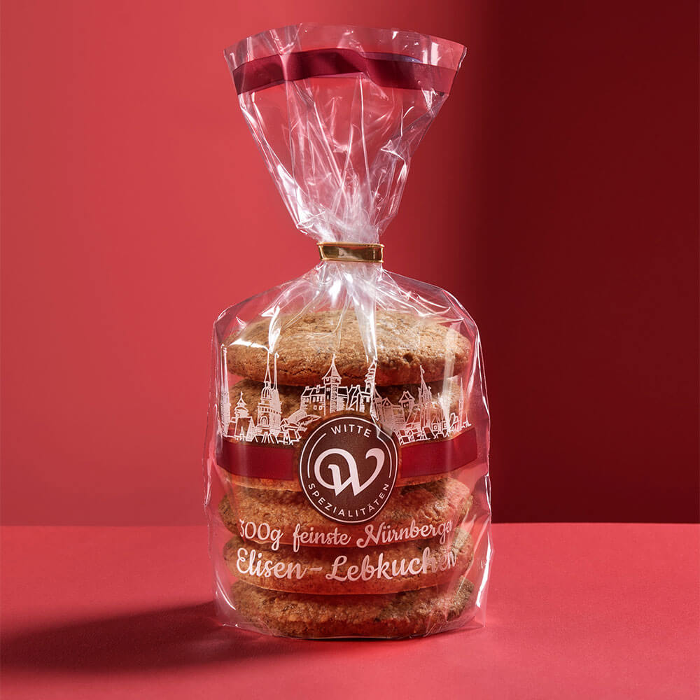 Ein klassischer Genuss in kompakter Form: Sechs hochwertige Lebkuchen im Format Ø 78 mm, vereint in einem Beutel mit 300 g Inhalt – präzise gefertigt für anspruchsvollen Genuss.
