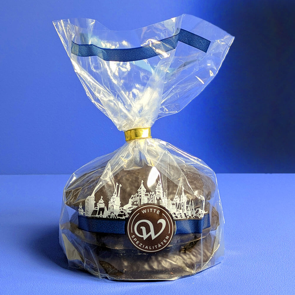 Ein feines Meisterstück handwerklicher Lebkuchen-Kunst in kompakter Form – mit besonders hochwertigen Zutaten und edler Schokoladenveredelung.