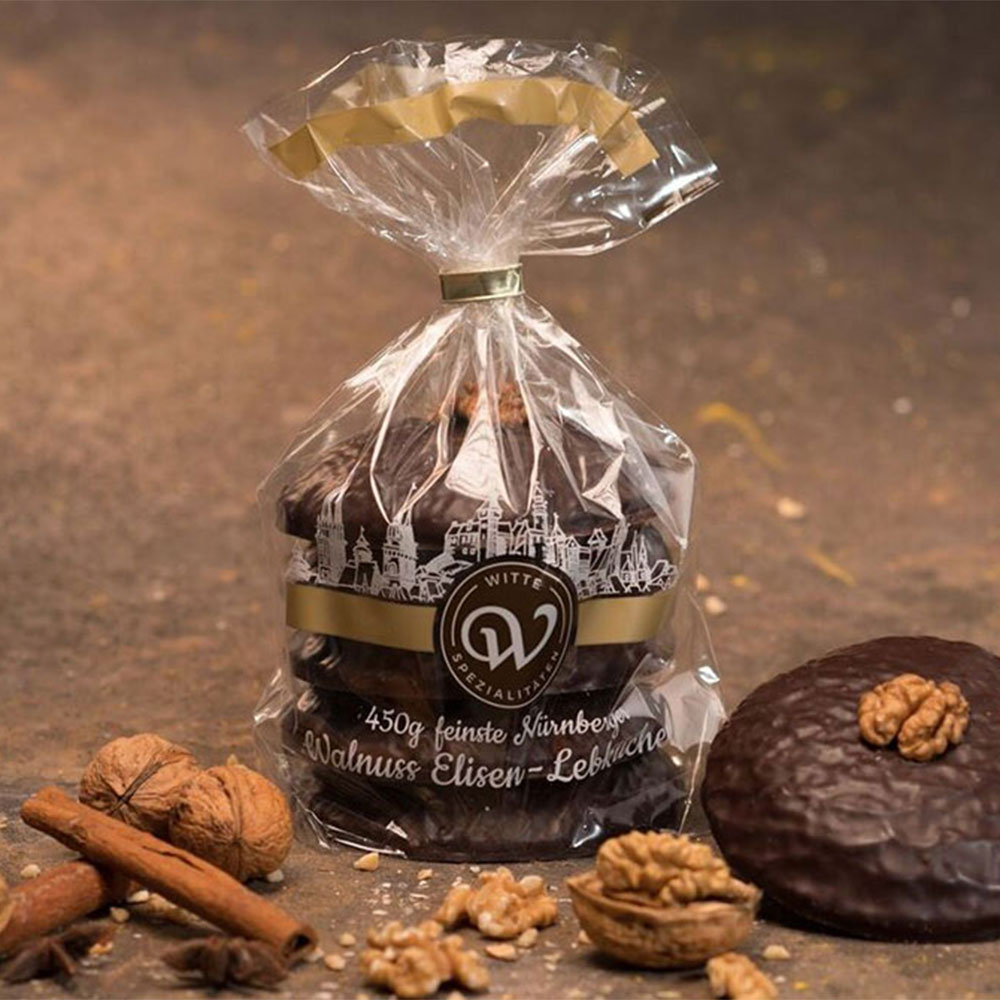 Diese Spezialität besticht durch den hohen Walnussanteil: Der Teig enthält 32 % Walnüsse (Kernanteil), was ihm eine besonders ausgeprägte nussige Tiefe, eine saftige Textur und einen charaktervollen Geschmack verleiht. Nach dem Backen werden die Lebkuchen mit einer feinen Zartbitter-Schokolade überzogen, die den nussigen Kern elegant umhüllt und einen angenehmen Kontrast von kräftiger Nuss und edler Bitterschokoladenveredelung schafft.